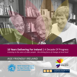 2019 marks ten years since the launch of the first Age Friendly County Strategy in Ireland. Today all 31 local authority areas have now formally adopted the age friendly programme thus representing a full national roll out of the model. Indeed, April 2019 saw Ireland become the first country to be fully affiliated with the World Health Organization’s (WHO) Global Network of Age Friendly Cities and Communities.